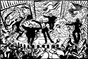 Sì, lui l’avrebbe fatto. Sarebbe salito sul palco, avrebbe annunciato: “Il futurismo ha rotto i coglioni! Gettateci nel cestino come i manoscritti inutili! Lo desideriamo!”, e giù ortaggi e pomodori. Questa è la profonda differenza tra lui e i gerarchetti che giocano all’eterna riscoperta e rivalutazione del futurismo (60 anni di ininterrotta rivalutazione, e ancora non si trova qualcuno in grado di leggersi Zang Tumb Tumb).