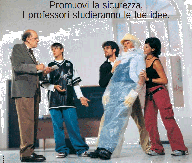 È la pubblicità di un concorso indetto dal Ministro dell’Istruzione e dall’Inail, per “l’assegnazione di n. 200 borse di studio agli studenti degli Istituti Tecnici e Professionali […], che presentino progetti in tema di sicurezza e salute negli ambienti di vita, di studio e di lavoro”.