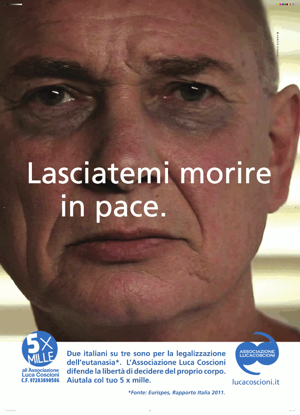 Per esempio, a Milano è successo che l’Associazione Luca Coscioni – che lotta per introdurre in Italia l’eutanasia e sta chiedendo il 5 per mille – ha stampato e affisso il seguente manifesto: