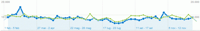 Non saprei. A occhio mi sembra una tendenza generale: i blog stanno perdendo traffico. Non sono più al centro della sfera: raramente ci si trova a conversare sotto il post di qualcuno. Gran parte della conversazione si è spostata sui network (in Italia il 2011 è stato l’anno della riscoperta di twitter), mentre i blog si sono appiattiti lungo le pareti: sono fonti da citare, carte da consultare. Se uno accetta questa nuova situazione, può anche immaginare un rinascimento dei blog nel 2012.