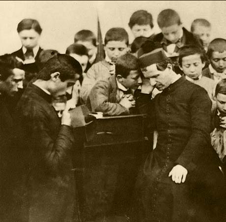 C’è un documento iconografico notevole di questa “affettività del languore”: la confessione, davanti al Fotografo, in bella posa, del chierichetto Paolo Albera, tra altri preti e ragazzi. Don Bosco aveva voluto che gli poggiasse la fronte sull’orecchio.