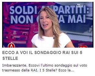 Agorà (Rai3) ha divulgato un sondaggio Ixé in cui il PD è al 32% e il M5S al 25%. Il Fatto invece ha pubblicato un sondaggio di Scenaripolitici.com in cui la forbice tra PD e M5S è di un punto, anzi mezzo. Tra un mese sapremo quale dei due sondaggi era più imbarazzante. Per ora, l’unica statistica di cui mi fido è quella che mostra come storicamente i sondaggi pre-elettorali in Italia non ci prendano mai. E questo è tutto. Alla prossima.