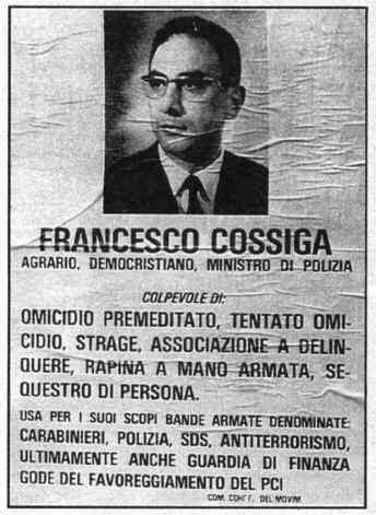 Ci sono le espressioni e i modi di dire “forti” che per consolidata tradizione ci si immagina di sentire sulla bocca della “gente” (parola assai cara al Presidente): carabinieri e guardie di finanza “s’incazzano”, “Moro si rese conto che non erano dei ladri di polli”, “mi fischiano. E chi se ne frega, se non controfirma, ciccia!”. Ma c’è anche l’imitazione perfetta di ben altri modelli. Il passo che segue ricalca in modo stupefacente – nella scelta delle parole e dei gergalismi, nei giri di frase, nella struttura argomentativa – la prosa degli “storici” documenti delle Br: “più che di terrorismo si dovrebbe parlare di sovversivismo di sinistra, di un movimento cioè che assumeva quale scenario obiettivo della propria azione e fine mediato della propria iniziativa, quella rivoluzione per la conquista del potere e il rovesciamento delle istituzioni borghesi che erano stati rappresentati come ‘oggetti politici definiti’, di cui la pratica terrorista doveva costituire l’innesco della rivoluzione di massa a livello di ‘movimento’”. Una mimesi perfetta.