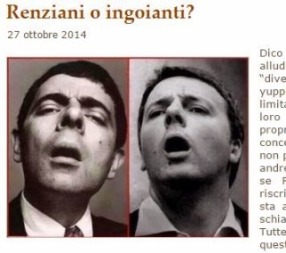 Scopro che Scanzi, ultimamente, indulge ad automatismi sospetti. Per esempio usa sempre la stessa immagine per introdurre qualsiasi post su Renzi. L’immagine è un divertissimo accostamento tra Renzi e Mr Bean, ah ah ah – sì, ma quello non vuol dir niente, magari è una scelta per confortare i lettori. I pezzi poi, cosa vuoi mai, la solita zuppa antirenziana; di buon livello, per carità, e non si discute la genuinità e la sostanza degli ingredienti. Ma comunque la solita zuppa. Possibile che uno spirito libero come Andrea Scanzi non si stia, in un qualche modo, annoiando? La prima nota dissonante la trovo in un post del due dicembre.