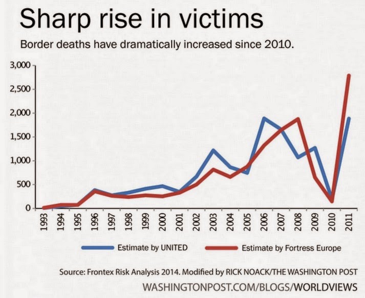 A proposito di massacri. C’è chi sostiene che Stalin e Mao siano da giudicare sullo stesso piano di Hitler: per quanto i loro massacri fossero meno pianificati, e più spesso risultato di negligenza e scarsa organizzazione. Sono d’accordo: tendo a giudicare le persone dai risultati, più che dalle intenzioni. Credo che nel futuro sempre più persone la penseranno come me: e riguardo alle stragi di cristiani intorno al mediterraneo, non faranno tutta questa differenza tra integralismo islamico e xenofobia italiana. Ha ucciso più cristiani Al Qaeda, o la negligenza del ministro Maroni? Più l’Isis, o la decisione di sospendere Mare Nostrum (900 vittime in un solo anno)? La conta dei morti non si potrà mai fare, anche perché il battesimo non lascia segni. Dio magari i suoi li riconosce, ma per il mare sono tutti morti uguali.
