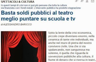 Mi spiace che alla corte di Renzi abbia vinto lui e perso Baricco, pur così applaudito alla Leopolda. Non per il valore letterario, ma perché B. vedeva il problema in modo diametralmente opposto, e un giorno osò scriverlo: basta aiuti al teatro, investiamo tutto nella scuola e nella tv. Inutile foraggiare prodotti culturali di nicchia, se a scuola alleviamo analfabeti; il teatro rinascerà quando e se scuola e tv produrranno cittadini in grado di apprezzarlo. Mi pareva l’unica proposta logica, ma alla Leopolda Baricco non la portò (non ne ebbe il coraggio?) Ha vinto il modello-Lodoli, che insiste a vedere nella classe docente non un insieme di lavoratori che deve adeguarsi a determinati standard professionali, bensì una casta intellettuale che celebra la propria identità andando a teatro, leggendo libri: “cultura”, insomma in senso antropologico.