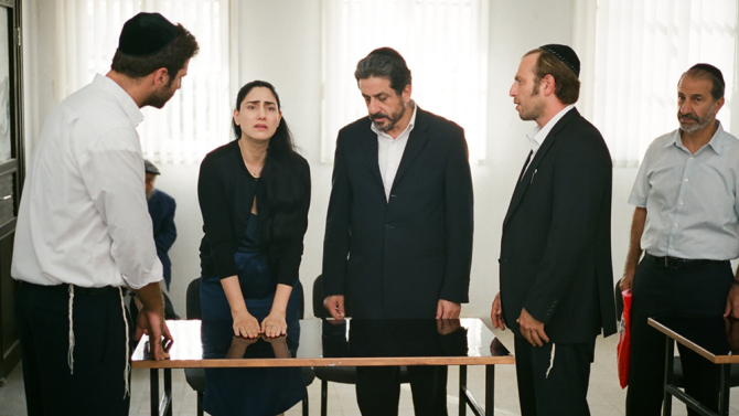 In Viviane ci sono almeno due film interessanti. Il primo è quello di denuncia, che si presenta sin dalle prime scene senza sfumature: c’è un’ingiustizia, c’è una vittima eroica che combatte con tutte le sue forze, c’è un’evidente iniquità nella legge, tre giudici parziali che non la vogliono vedere e non hanno altra scelta che applicarla, un marito ottuso e geloso che ne approfitta senza sforzo. Tutto è già definito, nero su bianco, nei dialoghi iniziali, e anche a noi spettatori non resta che accomodarci dalla parte in cui Ronit e Shlomi Elkabetz hanno deciso di farci sedere. Non possiamo che detestare il flemmatico marito, e tifare per Viviane, parrucchiera autosufficiente (personaggio ispirato alla madre dei registi) – l’unica persona a portare un po’ di colore in quella sala: una traccia delle stagioni che fuori da quelle finestre sbarrate stanno passando senza che nulla cambi. Siamo già parecchio indignati e il film è cominciato da pochi minuti. I registi hanno tutta l’aria di volerlo ambientare tutto in una candida ma angusta sala di tribunale, e il fantasma del Noioso Film A Tema si sta pericolosamente concretizzando. Scopriamo nel frattempo che in Israele un rabbino può sospendere una patente (ma il marito non l’ha mai presa per paura di dover guidare il sabato) e una carta di credito (ma l’unico conto in banca del marito è quello cointestato alla moglie); può persino incarcerare il marito che si rifiuti di comparire – ma non può costringerlo a recitare la terribile frase di assenso, “a partire da questo momento… sei permessa a qualunque uomo”