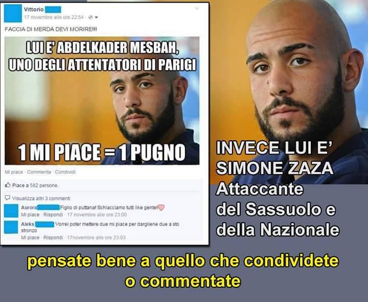 Vergogna finiamola fate girare, che negli ultimi giorni è letteralmente esplosa, disseminando sui social network centinaia di immagini simili – foto di celebrità associate a slogan “gentisti” dal qualunquismo insostenibile. Si tratta di una parodia di immagini razziste che vengono effettivamente prodotte da anonimi, e che hanno una certa efficacia – se qualcuno sente la necessità di combatterle.