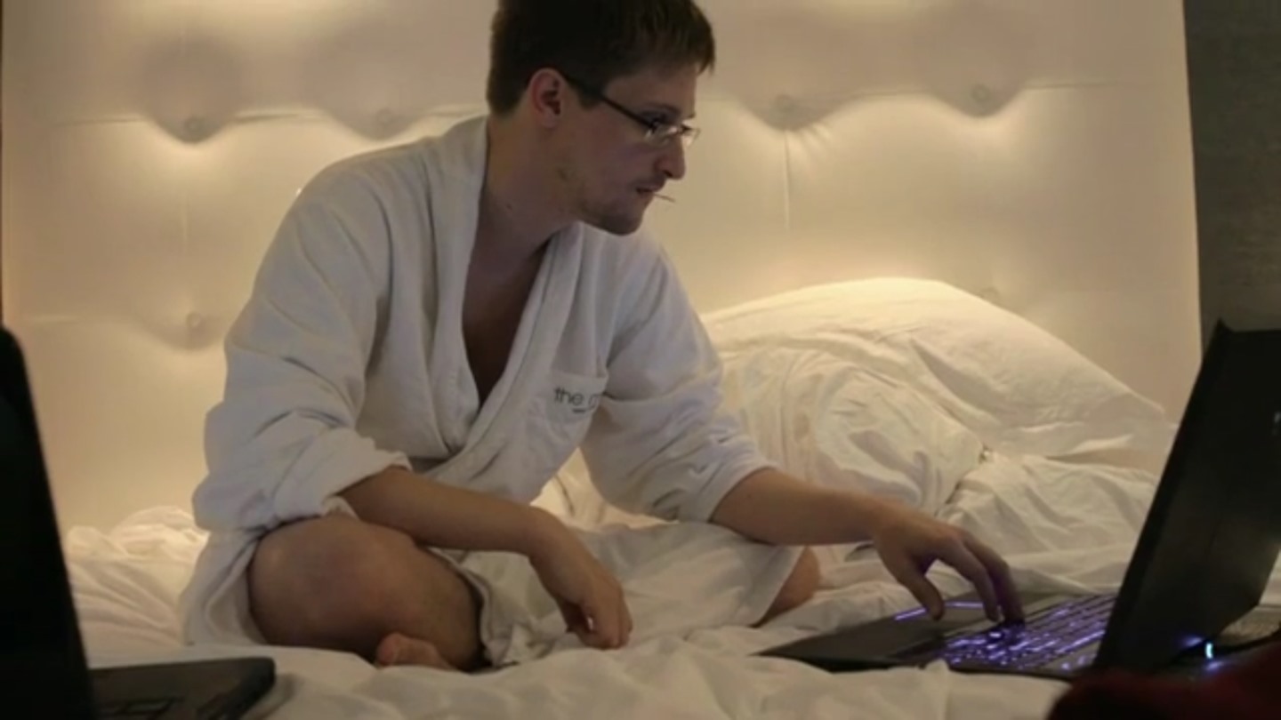 Quando dopo un quarto d’ora di film improvvisamente compare – sulla poltrona di quell’anonima stanza d’albergo che abbandonerà soltanto negli ultimi minuti – non possiamo che identificarlo: a distanza di appena tre anni il suo volto è diventato un’icona inconfondibile. Ma questo Edward Snowden ancora non lo sa. Su quella poltrona, è ancora semplicemente Citizenfour: un tizio affabile, dalle idee chiare e dalla parlantina sciolta che ha appena disertato, tradendo la fiducia del suo Paese e del suo datore di lavoro. Sa che non tornerà mai più a casa. Sospetta che verrà arrestato e rinchiuso a tempo indeterminato, come Chelsea Manning. Ci parleresti di te?, gli chiede Glenn Greenwald. Snowden all’inizio nicchia: non vorrebbe attirare l’attenzione su sé stesso. Quel che importa davvero è nei file, e nell’enorme significato che quell’enorme raccolta di dati sensibili ha per tutti i cittadini del mondo. Bisognerebbe parlare di questo. Ma la Poitras continua a stringere l’obiettivo su di lui.