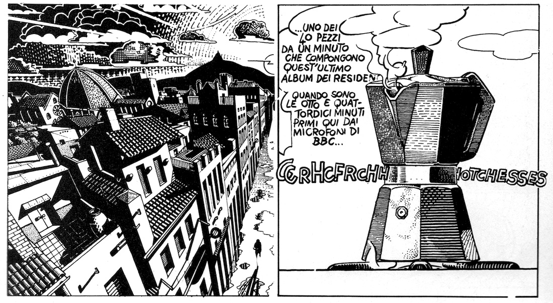 A un certo punto mi ero anche affezionato all’enigma, una specie di versione emiliana di “perché Freud e Schnitzler, vivendo a Vienna, non andavano a bersi birre insieme?” Mi faceva in un certo senso comodo, per come chiudeva due immaginari potenzialmente sovrapponibili in due compartimenti stagni: ’77 bolognese e anni Ottanta in provincia, nessuna comunicazione. Alla fine si trattava di due universi paralleli: in quello di Vasco, Pazienza non aveva mai disegnato Pentothal; in quello di Pazienza, Vasco è uno sballato che mastica nel buio in un angolo di vignetta e poi scompare. Le cose non potevano che stare così, finché qualche anno fa non incappo in un video che aveva tirato fuori Red Ronnie.