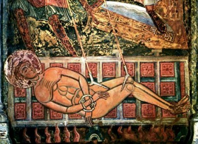 San Vincenzo era diacono, come Santo Stefano, presso Saragozza (come San Braulione). Sotto Diocleziano imperatore fu arrestato, come San Sebastano, e interrogato come il suo vescovo, San Valerio. Trovato colpevole di cristianesimo, fu torturato sul cavalletto, come Santa Caterina. Siccome invece di pentirsi ringraziava i suoi torturatori, come Sant’Ignazio, il magistrato decise di arrostirlo, come San Giovanni. Dopo un po’ che era sui ferri ardenti pare che abbia detto anche lui al carnefice “Voltami, son cotto”, come San Lorenzo. Ma a quel punto il magistrato si stancò, e così Vincenzo rimase cotto a metà, il destino di ogni imitazione di un’originale. Le copie più riuscite molto spesso sono le più superficiali.
