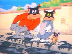 Un’immagine di Tom e Jerry censurata dai network tv USA. (La prima volta che la usai per corredare un pezzo, trovavo la cosa piuttosto assurda: adesso no, non faccio più nessuna fatica a capire quanto quei labbroni e quelle treccine possano risultare offensivi). |