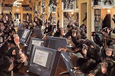 L’internet invece dobbiamo figurarcela come un’enorme palestra di scimmie, ma quando dico enorme dico proprio che ormai siamo in miliardi, e abbiamo una tastiera a disposizione per quasi tutte le ore del giorno, il che significa che le possibilità di scrivere qualcosa di sensato non sono poi così basse e in particolare non sono più da qualche anno così inferiori a quelle del monastero continentale. Le scimmie sono animali sociali, con tutti i loro limiti; dopo anni di intense interazioni on line non potevano che arrivare a codificare una serie di comportamenti abbastanza interessanti, per quanto discutibili. Le dispute si sono ritualizzate al punto che vi sono argomentazioni che vengono rifiutate in quanto “fallacie”, una specie di fallo retorico (che come il fallo sportivo è sempre un po’ arbitrario, a volte vale la pena di fischiarlo a volte no). Uno degli esempi più noti è la reductio ad Hitlerum: dopo che alle scimmie era stato insegnato che Hitler era il male assoluto, nel giro di pochi anni avevano iniziato a paragonare a Hitler qualsiasi atteggiamento intendessero stigmatizzare. Ma persino le scimmie si rendono conto, evidentemente, che un paragone inflazionato perde il suo valore, e prima di arrivare al punto in cui chi apriva una banana dal punto sbagliato era Hitler, hanno stabilito collettivamente che la reductio ad Hitlerum era un tabù. Il che magari è altrettanto assurdo, ma almeno evitava loro di doversi difendere da accuse di nazismo ogni volta che pelavano una banana. La decisione non fu presa ufficialmente da nessuna intelligenza superiore: fu il punto di arrivo di una serie di atteggiamenti collettivi, presi da numerosissime intelligenze inferiori.